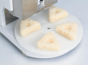 Onigiri Reis-Sandwiches können in verschiedener Größe und Gewicht hergestellt werden. Einfacher Wechsel zwischen Endlos- und Einzel-Formmodus mit einer One-Touch-Taste.